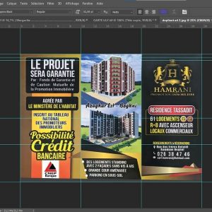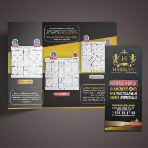 Nous avons conçu et imprimé des brochures 3 volets personnalisées pour Hamrani, une entreprise spécialisée dans la promotion immobilière. Réalisées par notre agence de communication et de publicité , ces brochures présentent de manière élégante et professionnelle les projets immobiliers de Hamrani, tout en mettant en valeur leurs offres et leurs services.