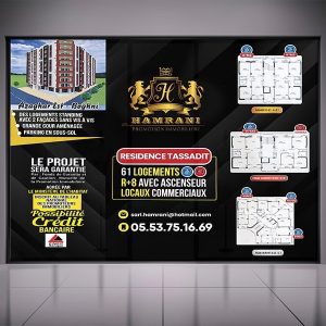 La Promotion Immobilière Hamrani, connue pour ses projets immobiliers de qualité, a confié à Diamond Agency et Diamond Print, la création et la pose d’un habillage vitrine personnalisé. Cet habillage a pour objectif de mettre en avant les projets en cours, d’attirer les passants et de refléter le sérieux et le savoir-faire de la promotion.