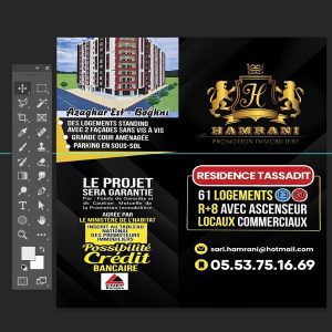 "Un habillage vitrine soigné et percutant qui reflète la qualité et le sérieux de la Promotion Immobilière Hamrani. "