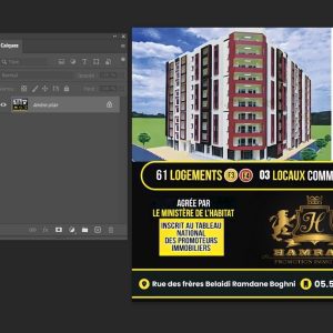 Pour valoriser ses projets immobiliers et renforcer sa présence visuelle, la Promotion Immobilière Hamrani a confié à Diamond Agency la conception graphique et l’impression d'un panneau publicitaire au format 2m x 1.50m.