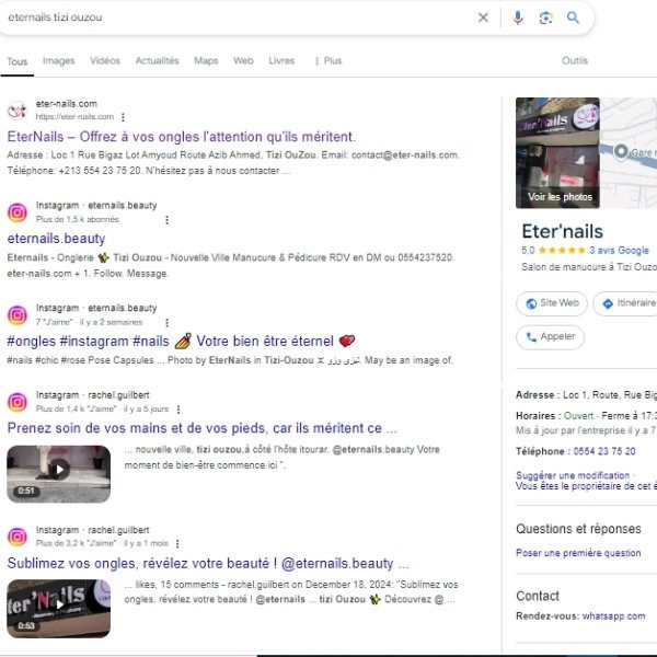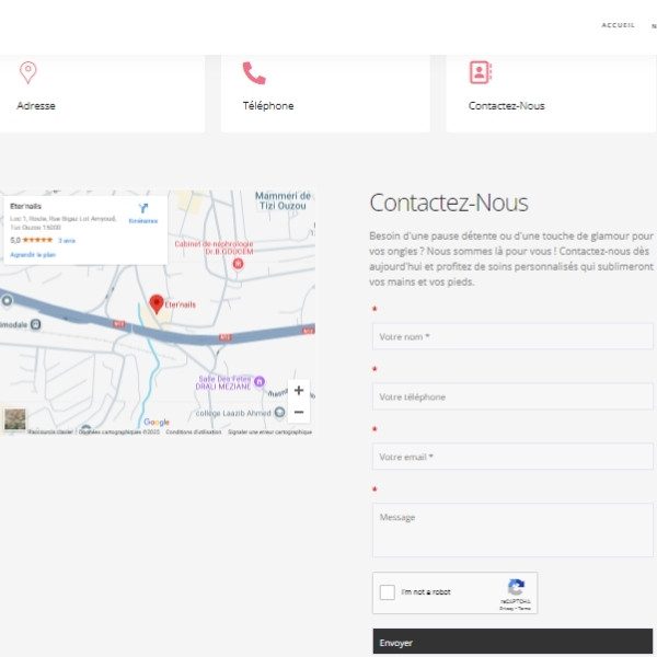 Le site web d'Eter'Nails met en lumière leurs services avec un design soigné et une navigation simple, tout en optimisant leur présence en ligne.