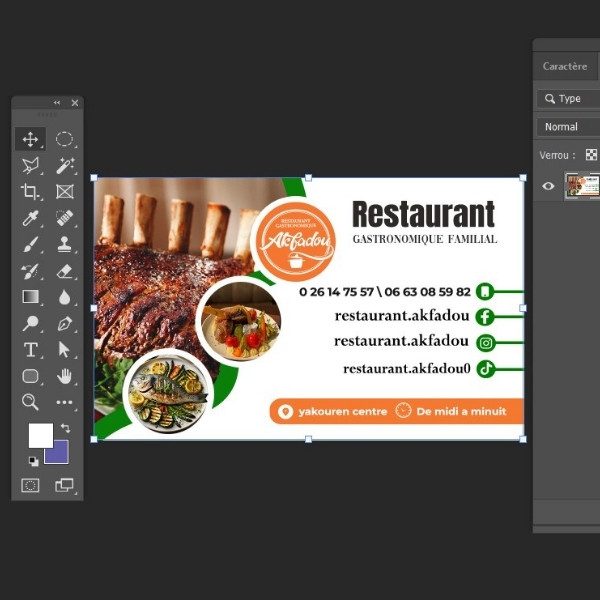 Chaque carte de visite a été pensée pour laisser une impression mémorable, en invitant les clients à découvrir la cuisine authentique et l’ambiance chaleureuse du restaurant Akfadou.