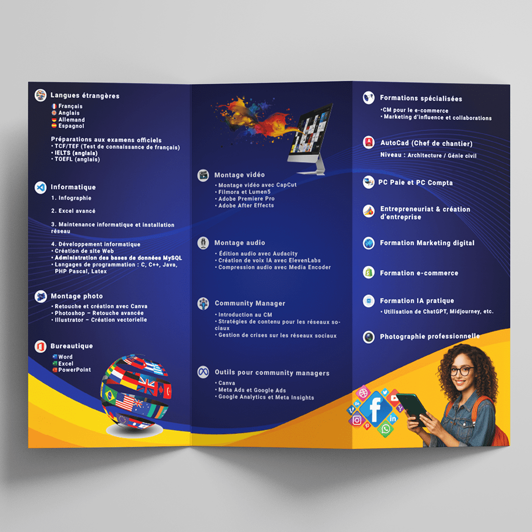 En collaboration avec notre filiale l'imprimerie Diamond Print, nous avons récemment concrétisé un projet de dépliants trois volets pour l’école Step by Step à Tizi Ouzou. Notre objectif : offrir à notre client un support de communication clair, attractif et percutant, qui valorise son image et ses services éducatifs.